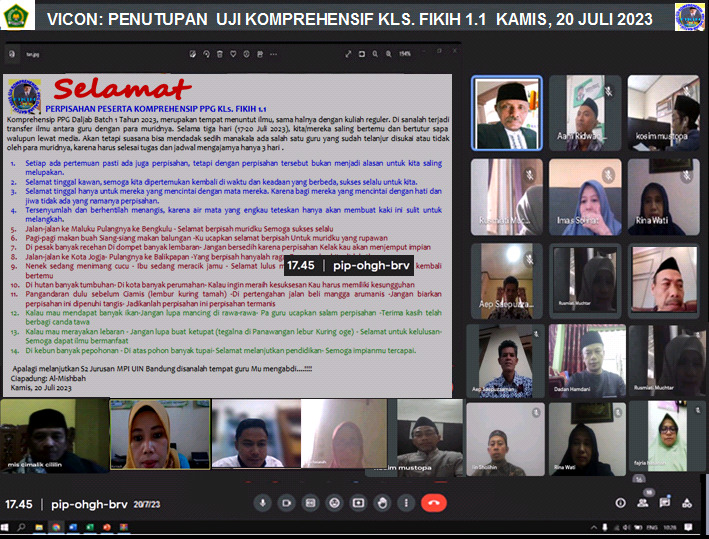 ZONAHALAL.ID-Ada yang unik dari perpisahan Komprehensif Pendidikan Profesi Guru (PPG) dalam jabatan (Daljab) Batch 1 Tahun 2023, Prof. Dr. A. Rusdiana, Guru Besar UIN Sunan Gunung Djati Bandung menjelaskan ini merupakan wahana memperdalam dan menuntut ilmu. "Intinya sama halnya dengan kuliah reguler untuk kelas fikih 1.1 dan 1.3. Di sanalah terjadi transfer ilmu antara guru dengan para muridnya," jelas Prof Rusdiana, Sabtu (22/7/2023).